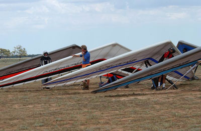 As with the Hay Open climatic conditions were much milder than normally experienced in Hay. A couple of days caught some people off-guard as the day was so cool that fleeces had to be worn - and who brings a fleece to Hay! Despite the milder conditions, the flying was fantastic with lots of people making goal and lots of personal bests. The Japanese team were making personal bests everyday with lots of happy, smiling and noisy Japanese in goal each day. The longest task for the competition was 243km with 35 pilots making goal. There was a little bit of drinking that night!